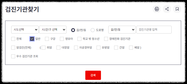 ➡️ 6. 우리 동네 선택, 건진항목 선택 후 검색 클릭
