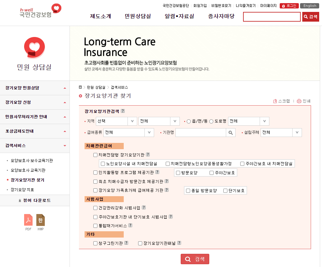 장기 요양시설 찾는 방법